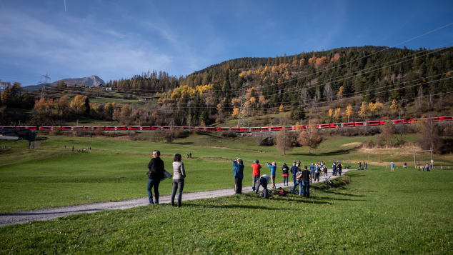 이 구간은 2008년 유네스코 세계유산에 등재된 기찻길로스위스의 황금빛 가을의 자연환경과 함께장관을 이룬 운행이었습니다.
