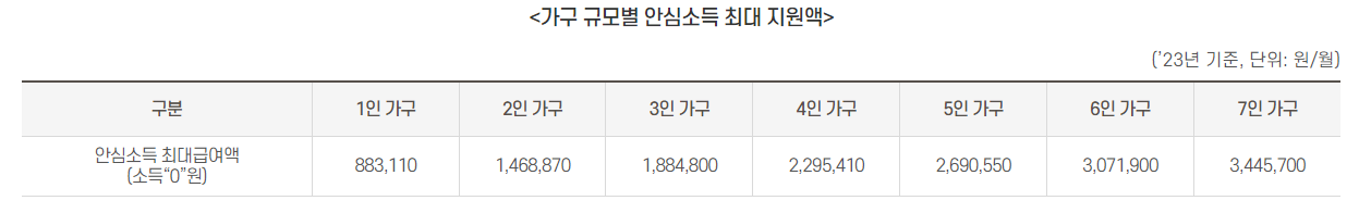 4인가구 4,590,819원을 넘지 않아야 합니다.