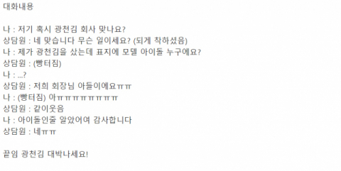 상담원은 웃으며 회장님 아들이라고 밝혔다는 글입니다.